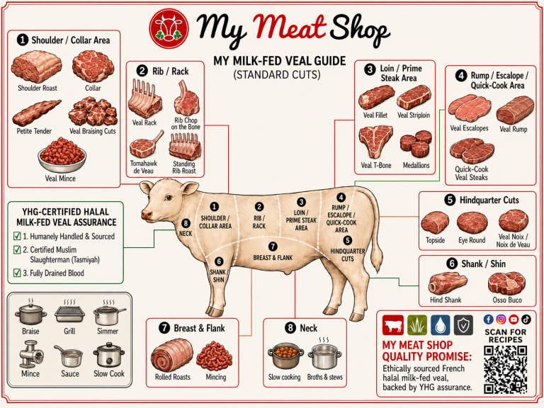 Halal Milk-Fed Veal Cuts Guide: How to Choose Shoulder, Rack, Loin, Rump, Shank & Roasts