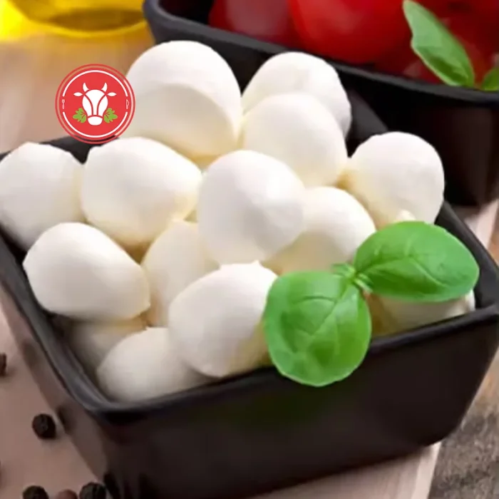 Mini mozzarella balls made from 100% buffalo milk – smooth, creamy, and ready to serve in cold dishes.