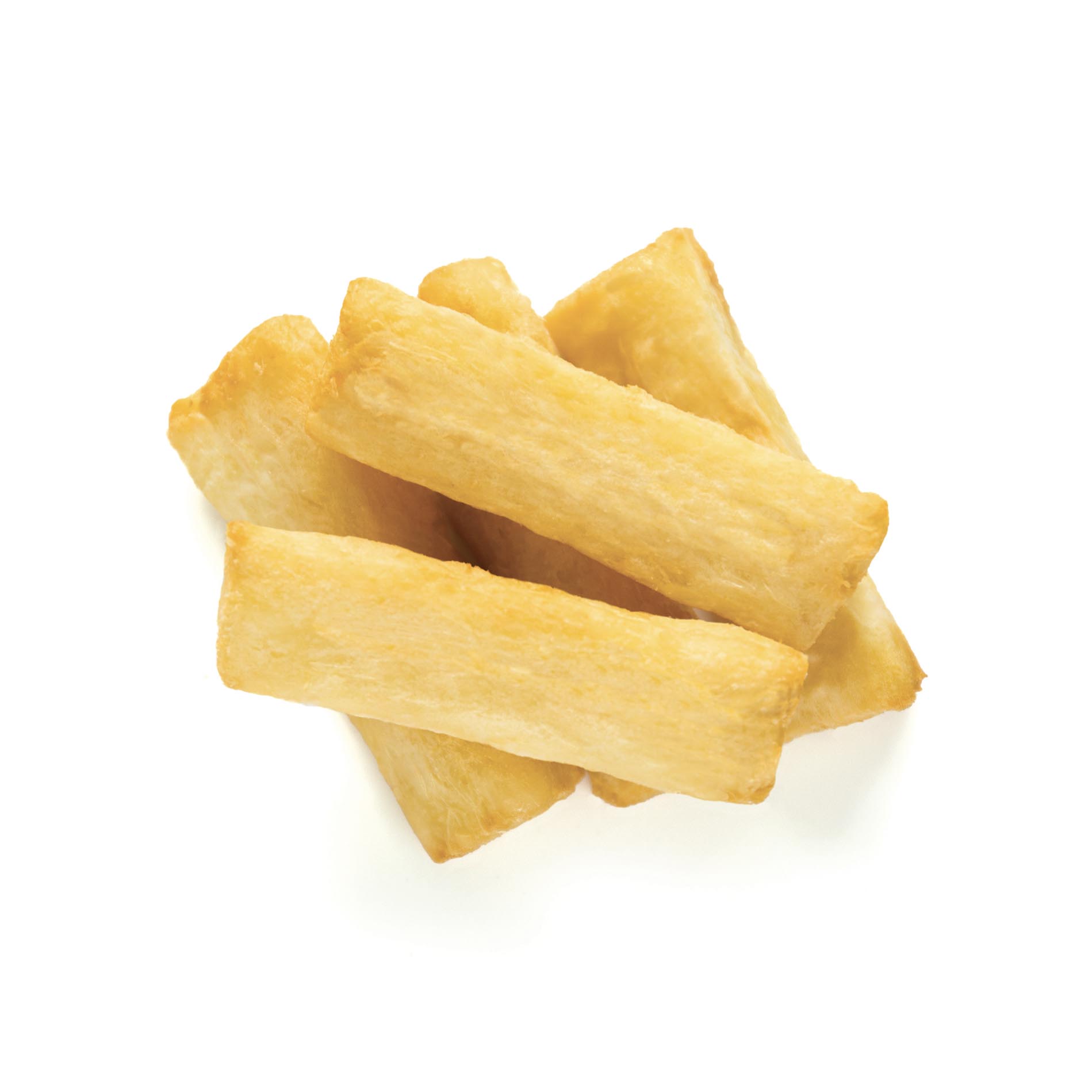 Frozen cassava (yucca) fries – crispy on the outside and soft inside when cooked. A great alternative to potato chips, ideal as a side dish or snack.
