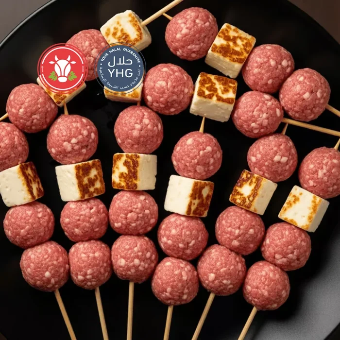 Halal Beef Meatball Skewers With Halloumi (Brochettes)