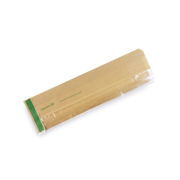 Kraft side-window baguette bags for filled baguettes, subs, and bakery items.