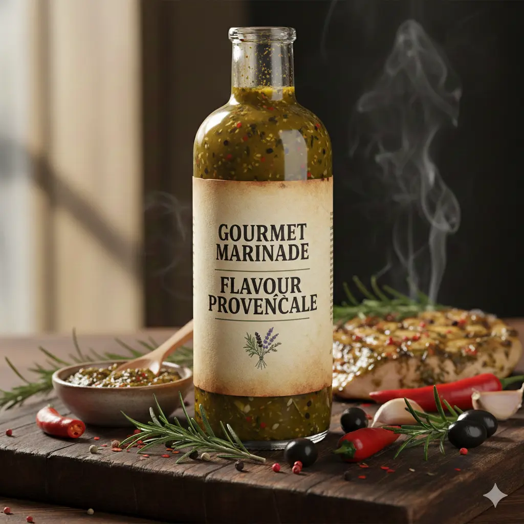 A Provençale-style marinade with herb-led Mediterranean flavour for grills, skewers and roasted dishes. Handy 1L format for easy home cooking.