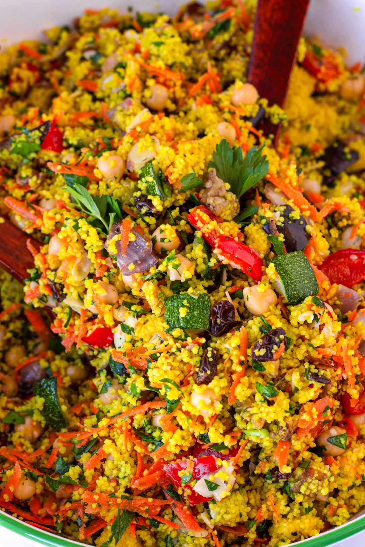Prepared fresh and chilled, this roasted vegetable and semolina salad brings together roasted vegetables with semolina, herbs, seasoning, and oil in a generous event tray that is easy to plate for buffet tables and group serving.