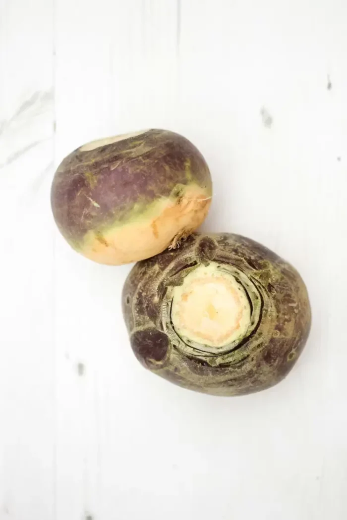 Fresh rutabaga swede with sweet, earthy yellow-orange flesh – ideal for mash, roasting, soups, stews and comforting root veg dishes.