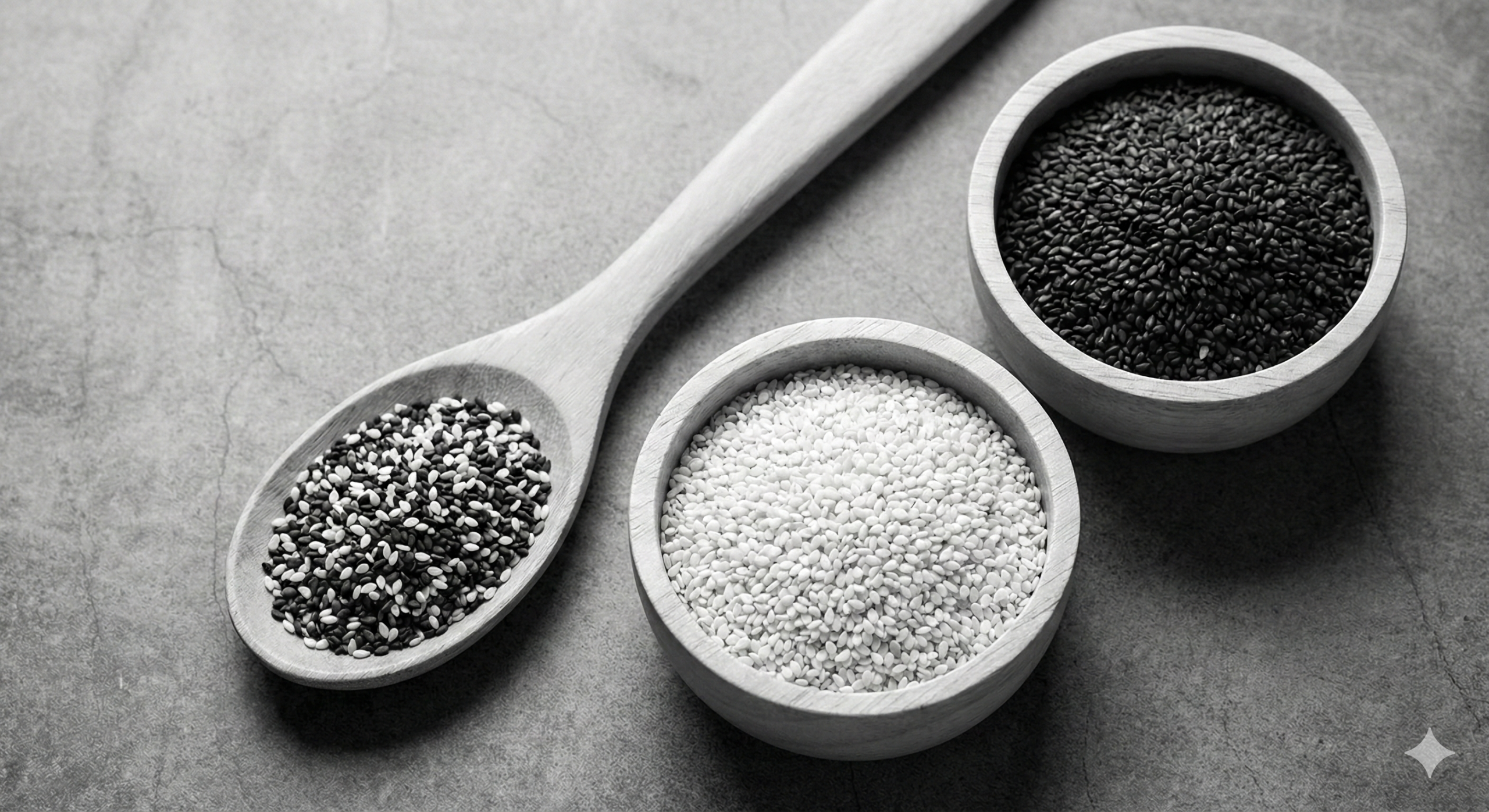 Sesame seeds in white and black options for finishing breads, salads, bowls, coatings, and savoury home cooking. A simple way to add nutty flavour, texture, and visual contrast.