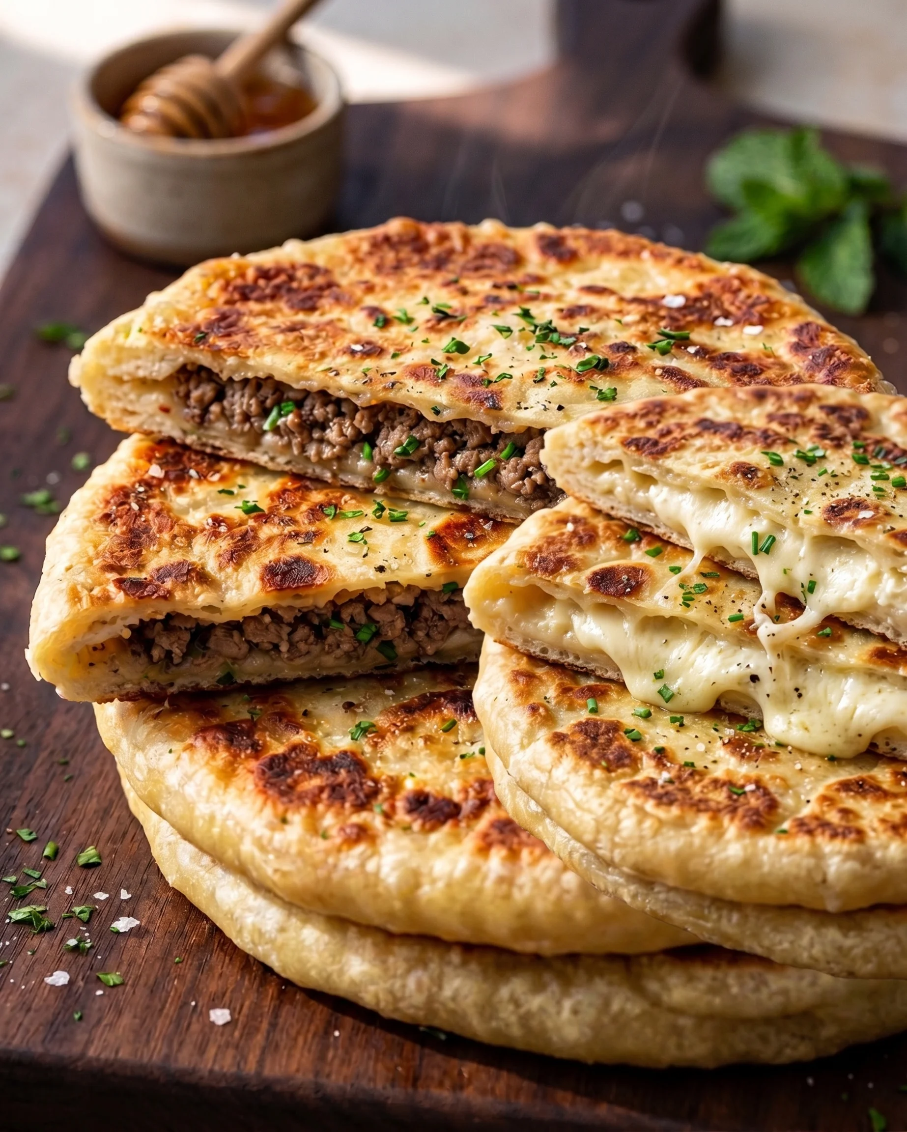 A chilled Algerian stuffed kesra slice made for easy home lunches, simple sharing, and quick bite occasions.